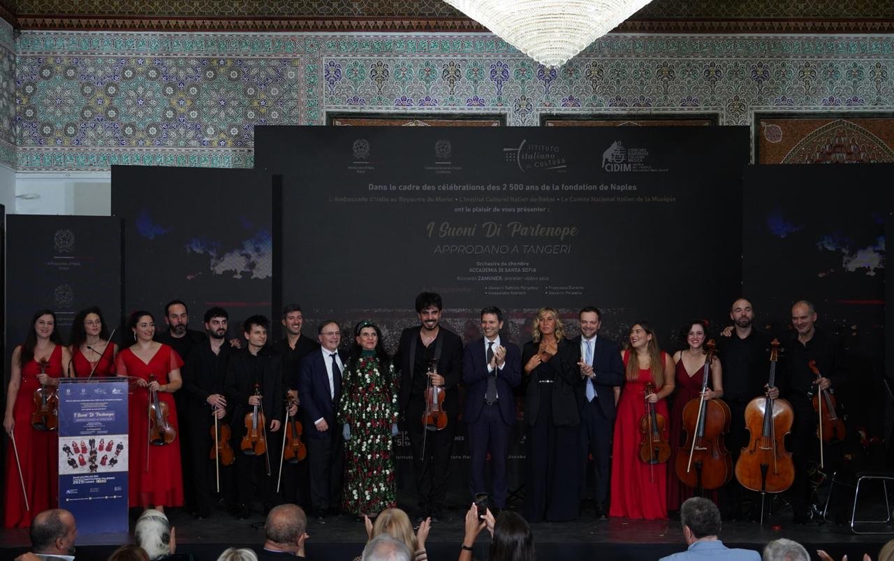« Nous sommes particulièrement heureux d’accueillir l’Orchestre de Chambre de l’Académie dei Santa Sofia, fleuron de l’une des plus belles traditions musicales italiennes. Ces concerts, dédiés au 2500ème anniversaire de la fondation de Neapolis, s’inscrivent idéalement dans le cadre des célébrations du 200ème Anniversaire des relations diplomatiques entre l’Italie et le Maroc : une histoire d’amitié, de dialogue et de collaboration qui se renouvelle sans cesse par la culture. La musique, langage universel, unit nos deux rives méditerranéennes et témoigne de la force de la diplomatie culturelle, qui demeure l’une des formes les plus authentiques d’amitié entre les peuples« , a déclaré Son Excellence Pasquale Salzano, Ambassadeur d’Italie auprès du Royaume du Maroc.